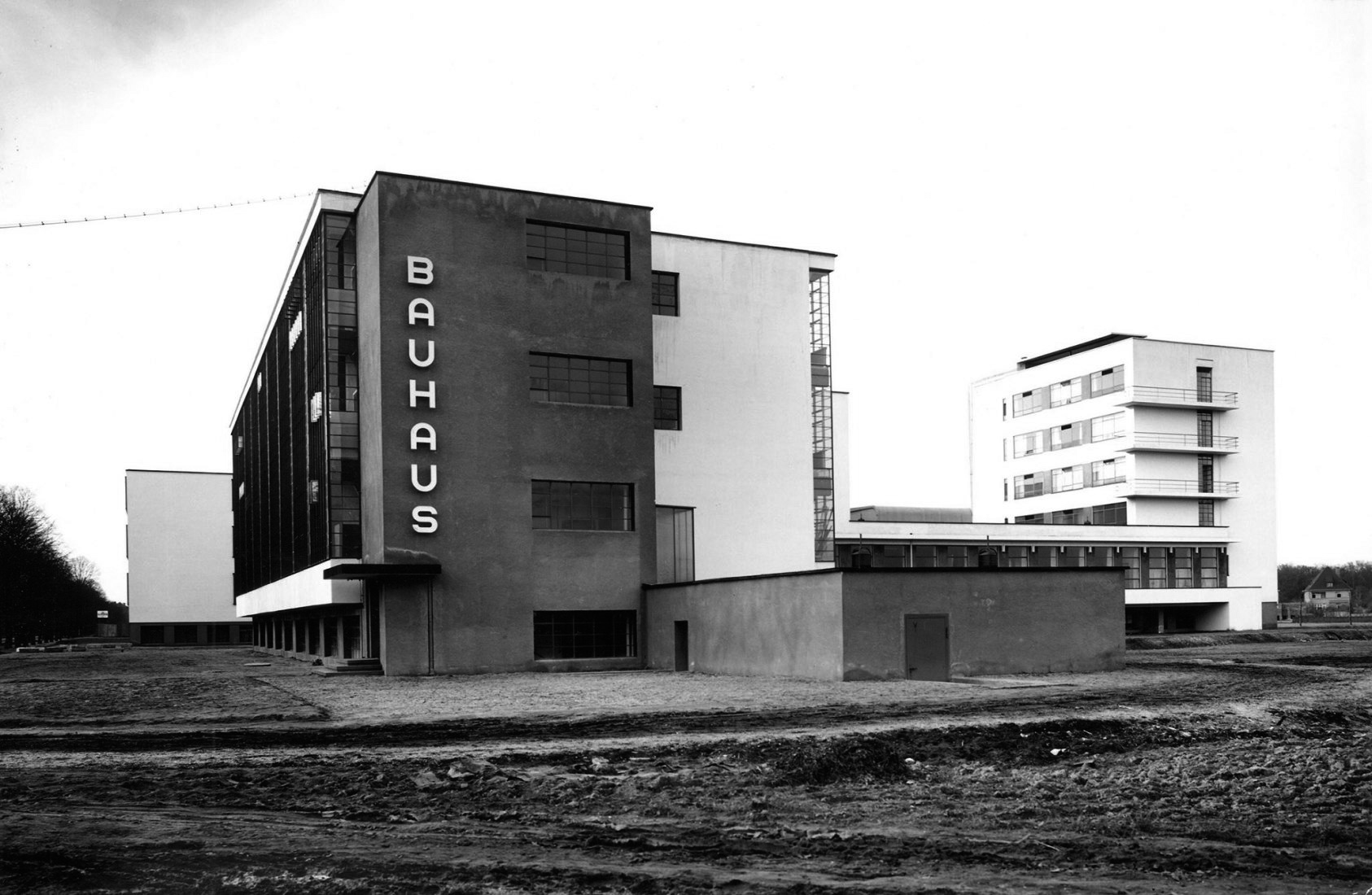 Bauhaus_Walter Gropius_Ansicht-Suedwest_Foto-Lucia Moholy_1926