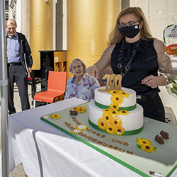 Am Mittwoch, 31. März 2021, beging das HVM den 100. Jahrestag seiner Eröffnung. Stadtpräsidentin Maria Pappa liess es sich nicht nehmen, persönlich in den Stadtpark zu kommen und ihre herzlichen Gratulationswünsche zu überbringen. Ebenfalls anwesend war eine St. Gallerin, die genau einen Monat nach dem HVM ihren 100. Geburtstag feiern kann: Margrit Moritzi, die heute in der Altersresidenz Singenberg lebt und viel über die vergangenen 100 Jahre zu erzählen wusste. Die Jubilarin erfreut sich bester Gesundheit. Wir wünschen ihr noch ein langes Leben!